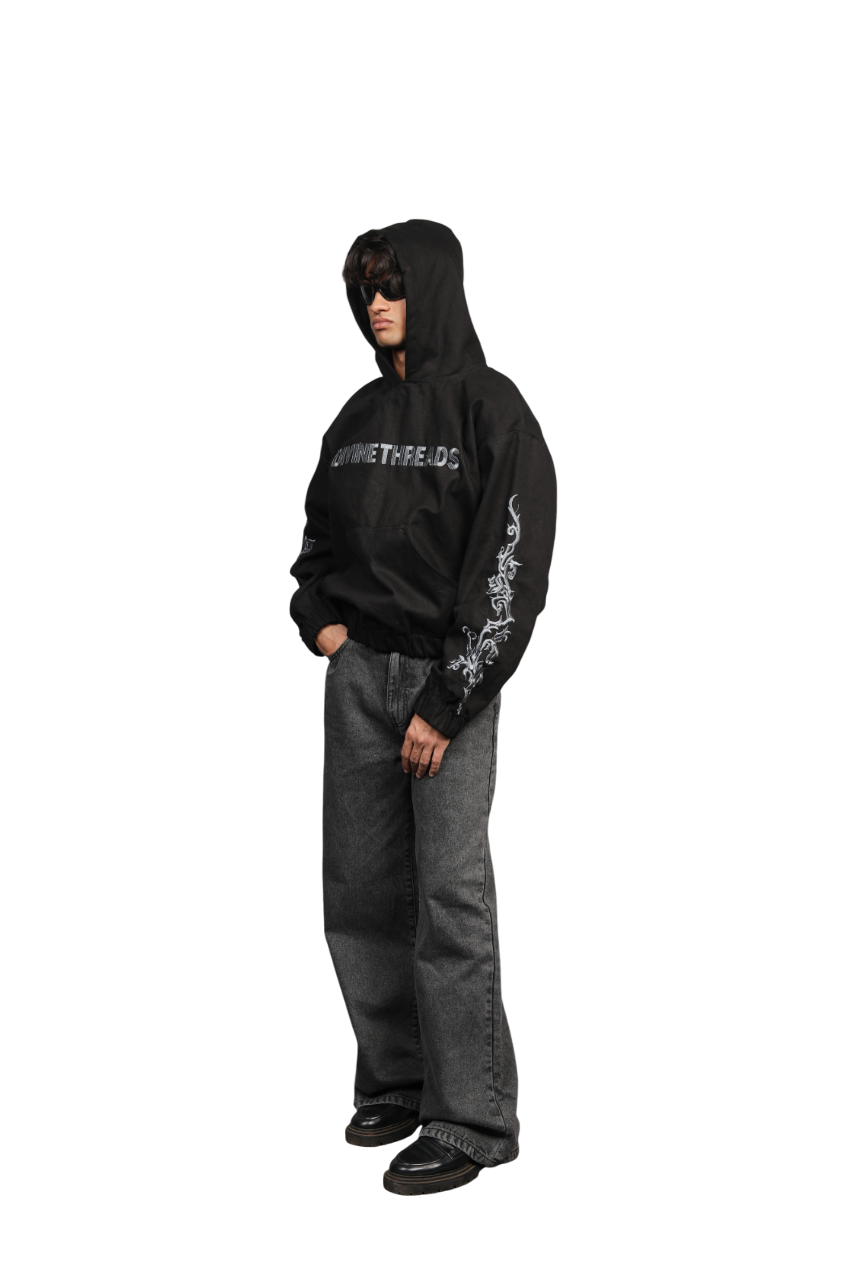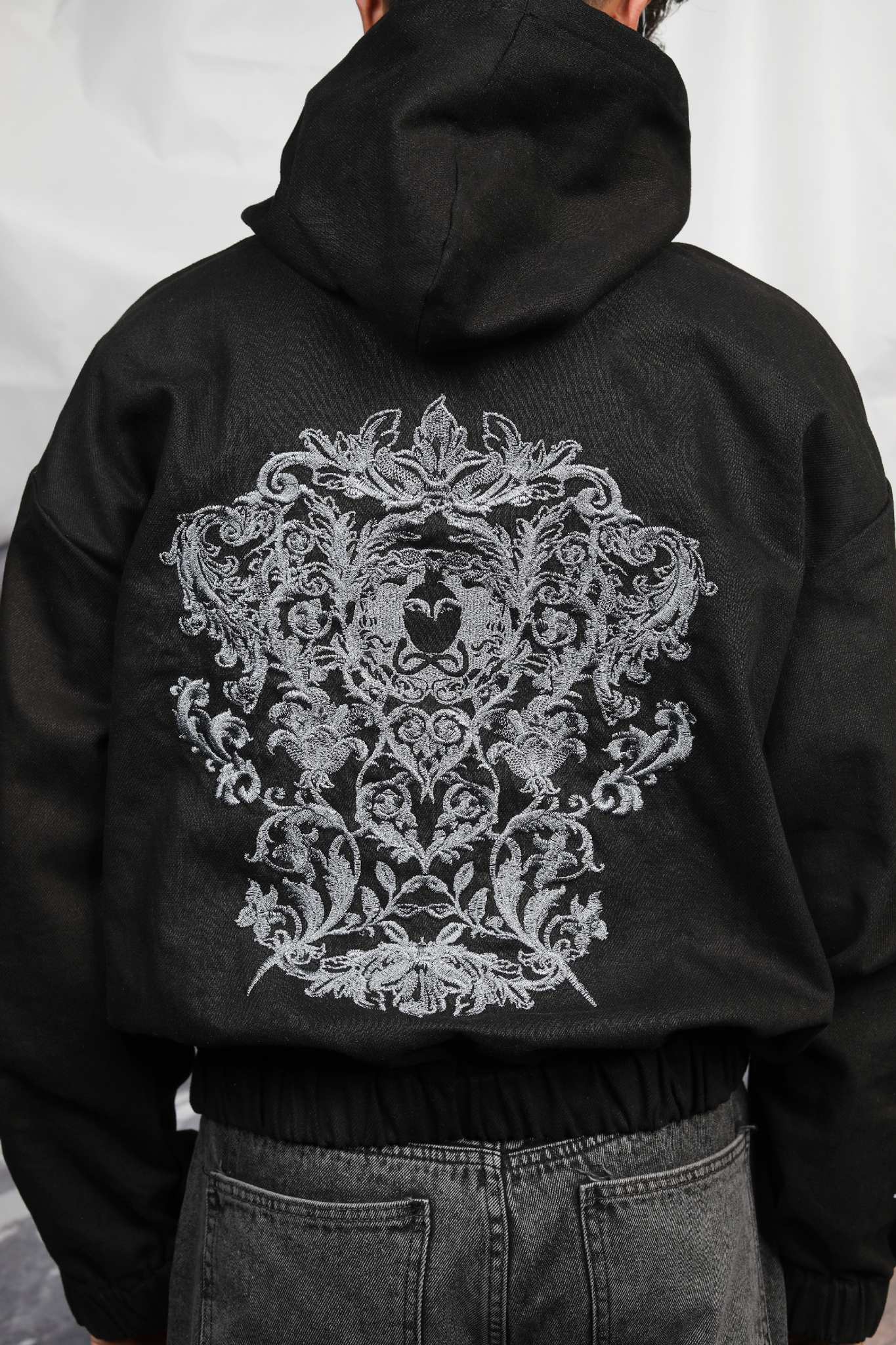 The Oversized Denim Hoodie reimagines casual streetwear with a bold and innovative twist. Made from pure, durable denim, this cropped hoodie combines timeless fabric with modern design. Featuring intricate embroidery, including an awe-inspiring back design crafted with over 150,000 stitches, this piece stands out as a true work of wearable art. The oversized fit offers effortless comfort, while the detailed embellishments add a touch of sophistication and individuality. Perfect for those who seek a striking, edgy addition to their wardrobe, this hoodie delivers both style and substance.