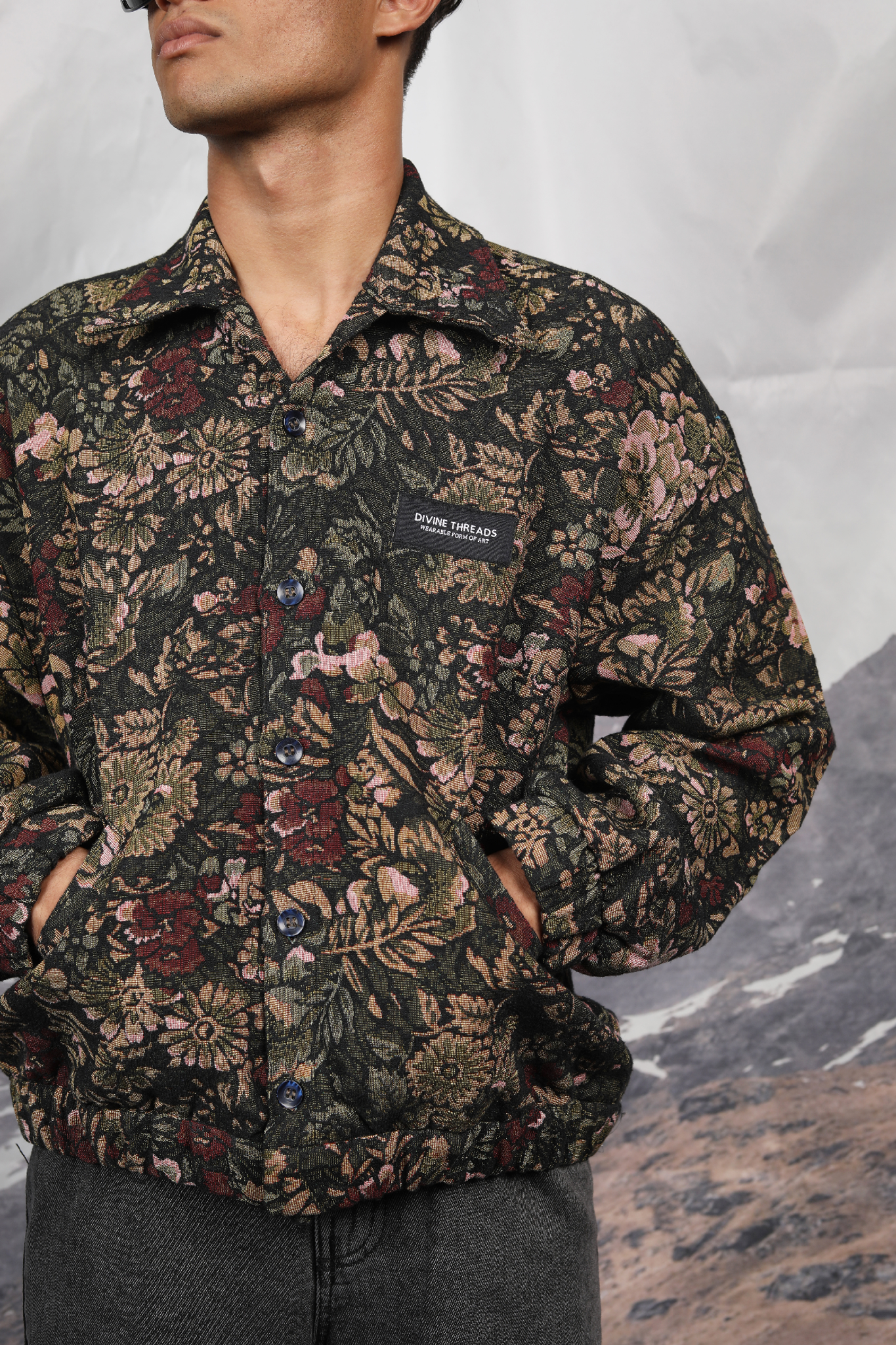 Add timeless elegance to your wardrobe with the Vintage Floral Jacket, a sophisticated twist on the classic bomber silhouette. Crafted from premium jacquard fabric, this jacket showcases an intricate woven floral design, exuding a perfect balance of vintage charm and contemporary edge. Designed for comfort and versatility, its tailored fit and attention to detail make it a standout piece for any season. Whether you’re dressing up or down, this jacket makes a bold yet refined statement, perfect for those who appreciate artistry in every thread.